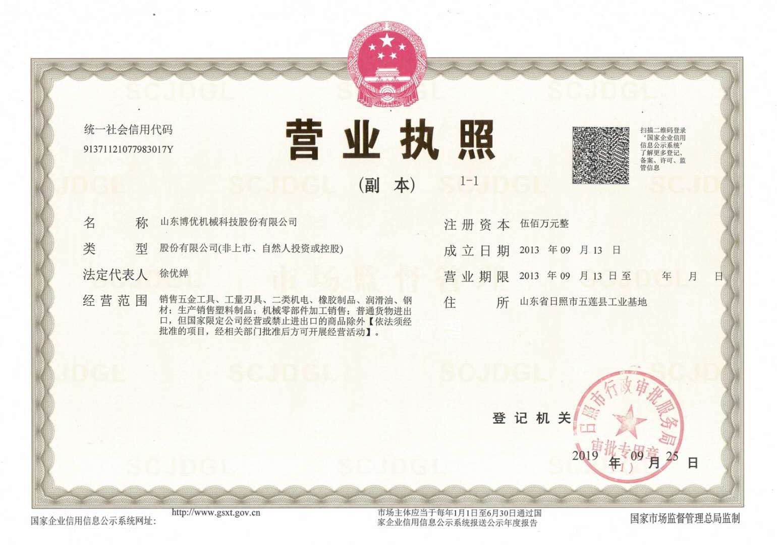 公司前身(日照博優(yōu)塑膠科技有限公司)于2013年注冊成立。